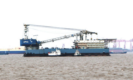 6月22日,在数艘拖轮的拖动下,一艘蓝白色的起重船缓缓离开长兴分公司0号舾装码头,标志着公司为利比里亚用户建造的1600吨起重船顺利交付。