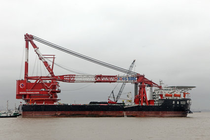该船是公司为江苏华西村海洋工程服务有限公司量身打造的,长178米、型深17米、型宽48米,臂架固定尾吊时主钩最大起重量4500吨,单钩起重量亚洲第一。该船的成功交付也打破了振华重工曾经建造的 “华天龙”号4000吨单钩起重量的记录。