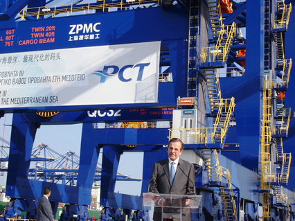 6月26日,作为中国企业在海外投资、合作的典范,由振华重工提供全套港机设备、中远投资运营的希腊比雷埃夫斯港三号泊位举行开港仪式。希腊总理萨马拉斯参加开港仪式,并发表了热情洋溢的讲话,他在讲话中多次评价了中国企业振华重工提供的先进港机设备。
